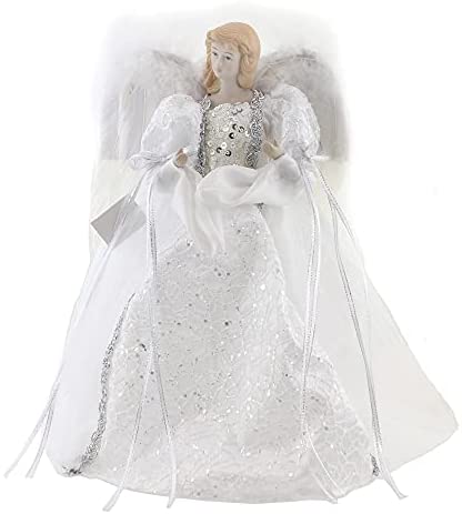 Roman Christmas – Enchanted Winter Silver Angel Tree Topper, 18″ H, Christmas Collection, Fabric, Christmas Decor, Home Decor, Inspirational, Durable, Long Lasting, Beautifully Detailed