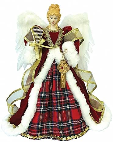 Unknown1 Santa’s Workshop 16″ Tartan Plaid Angel Tree Topper 16 Red Resin