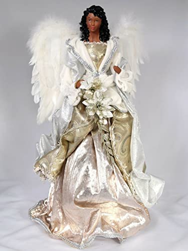18″ Gold & Silver Black Christmas Tree Angel Topper African American Victorian FOR HOME AND GARDEN