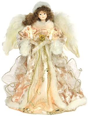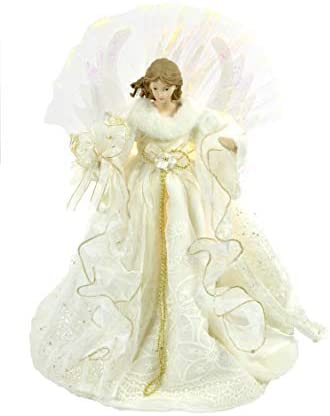 KSA 16″ Pre-Lit Ivory and Gold Angel Christmas Tree Topper – Clear Lights