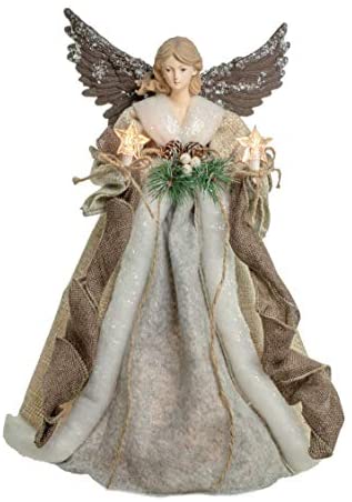 KSA 16″ Lighted Gold and Platinum Angel Christmas Tree Topper – Clear Lights