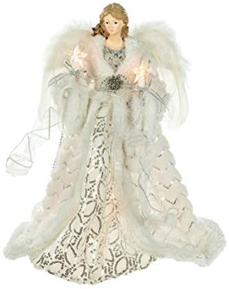 KSA 14.5″ Victorian Inspirations Lace Angel Christmas Tree Topper – Clear Lights