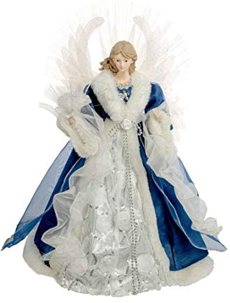 JJ’s Holiday Gifts 18” Blue Fabric Fiber Optic Large Modern Angel Tree Topper with Fur Coat