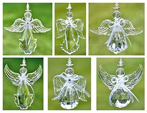 Large Crystal Quality Acrylic Angel Ornament (Set of 6 (1 of Each), Clear)