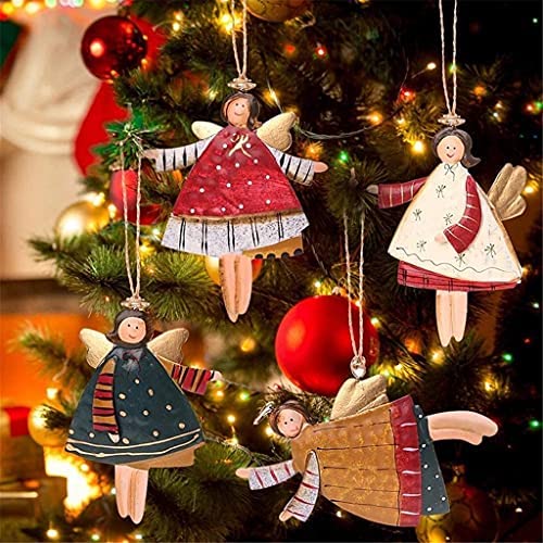 SSMDYLYM 4Pcs Angel New Year Metal Christmas Ornaments Pendants Hanging Gifts Xmas Tree Decoration for Home (Color : A, Size : One Size)