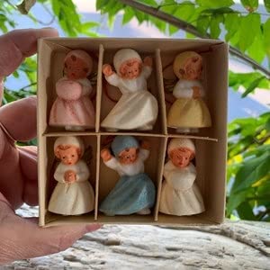 Vintage Sugar Angel Angels Ornaments Angel Christmas Ornaments, West Germany Feather Tree 1940 1950 Celluloid Plastic Set 6 pc