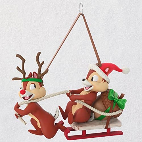 Hallmark Keepsake Christmas Ornament 2018 Year Dated, Disney Chip and Dale Dashing Through the Snow, Santa and Reindeer