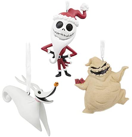 Hallmark Disney Tim Burton’s The Nightmare Before Christmas Jack Skellington as Santa, Zero and Oogie Boogie Christmas Ornaments, Set of 3