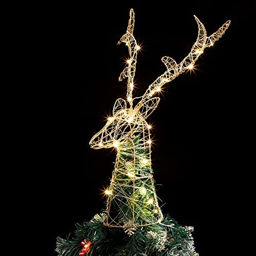 Kelon Christmas Tree Topper, Gold Star/Deer Tree Topper with LED String Lights,Battery Operated Metal Tree Topper with Timer for Xmas,New Year,Party, Wedding and Home Decor (Deer)