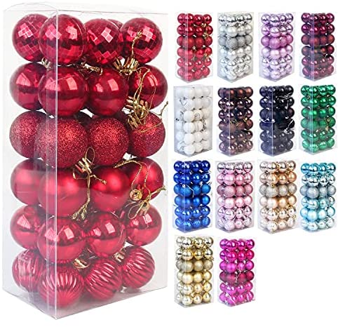 Christmas Ball Ornaments, Lytimes Shatterproof 1.4 Inches Xmas Balls Mini Foil Boxes Pinecone Ornaments Bells Santa Claus Decorations 32 Pcs for Christmas Tree, Holiday, Wedding, Party Decorations