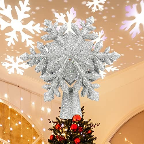 Chaunsee Christmas Tree Topper, Topper with Rotating Snowflake LED Projector, 3D Glitter Toppers, Light Up Toppers Decorations (Silver Topper), 9.2X8.85X2.5inch, (SL-MT4WXXP-B)