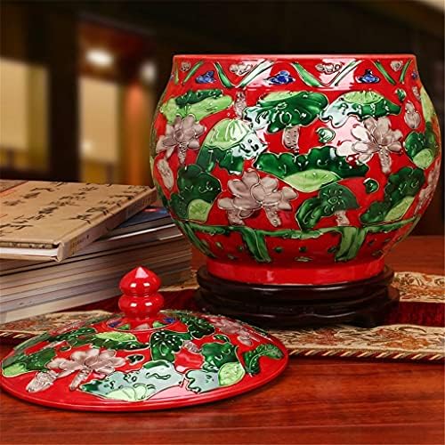 CHNOOI Porcelain, Antique Carved Red Mandarin Duck Ornaments, Storage Tank, Rice Tank, Melon Seed Tank, Wedding Gift (Color : C)