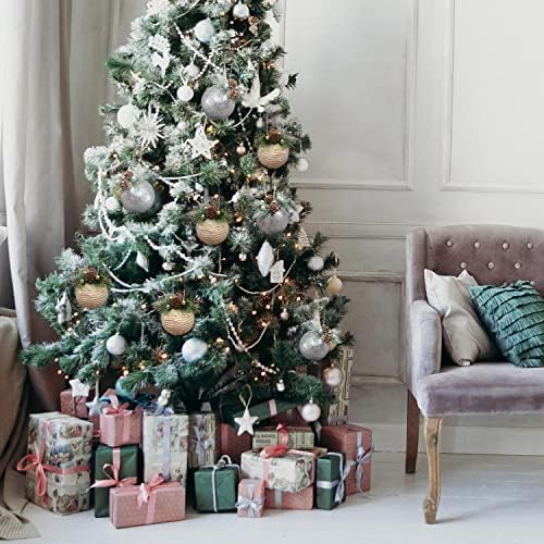 Perfect Ornaments for Christmas Trees:Designed specifically for Christmas, these lovely silver and gold Christmas balls are decorated with pine needles, pine cones and berries. They sparkle under the lights of winter night, very festive. Ideal for farmhouse Christmas tree decorations.