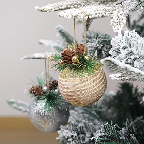 Christmas Balls Ornaments Tree Decorations, Gold and Silver Christmas Tree Ornaments Set of 6, Farmhouse Decorative Hanging Ball Baubles with Pinecones for Xmas Party