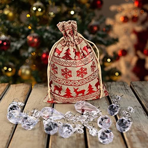 Christmas Crystal Decorations, 38PCS Christmas Tree Decor Ball Ornaments Set Hanging Acrylic Chandelier Beads for Xmas Garland Wedding Halloween Party Sun Catcher Rainbow Maker with Linen Bag