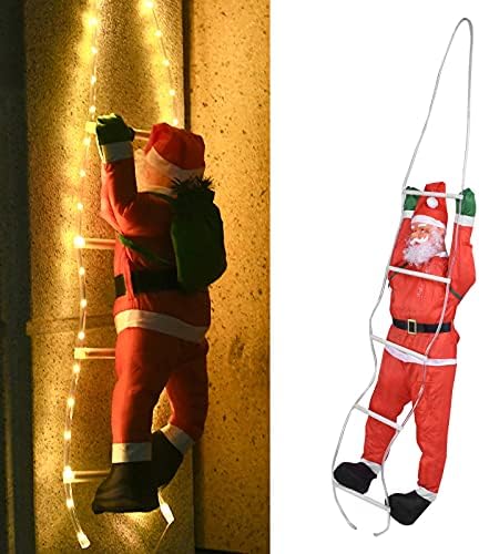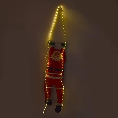Christmas Ornament, Cartoon Santa Claus Climbing Rope Eight Blinking Modes Santa Claus Decoration with Buttons for Home Door Decoration(120cm Warm White)