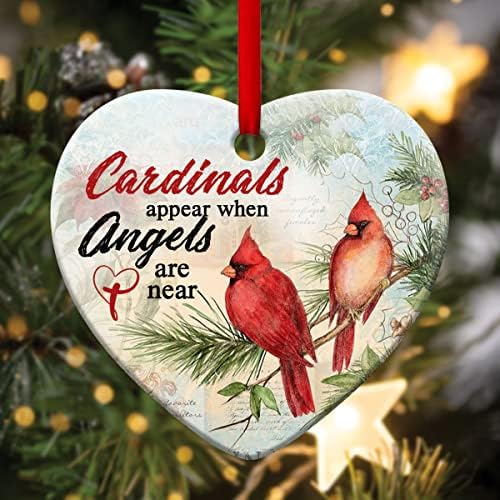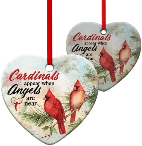 PREMIUM QUALITY: High quality Ceramic material. Ornament’s length x width: 3 x 3 inches, thickness: 0.18inches, Our Cardinals Appear When Angels Are Near Ornament is smooth to the touch, not rough, the colorful pattern printed on both sides is very high definition and delicate. Perfect for hanging on the Christmas tree as a decoration to attract attention, which is also a way to celebrate Christmas