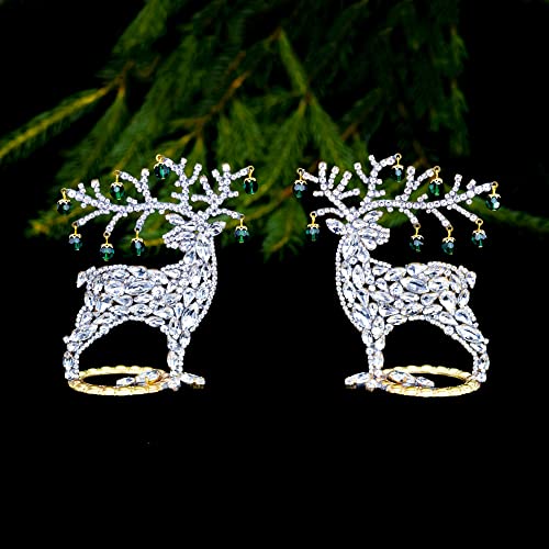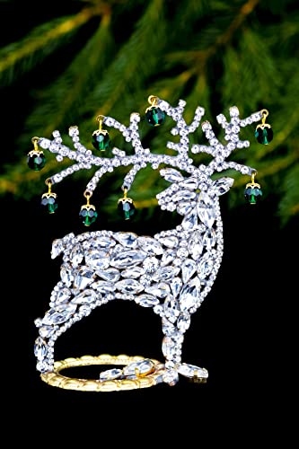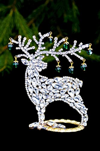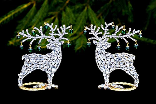 Delicate Christmas Reindeers made with clear coloured rhinestone crystals. Antlers are finished off beautifully with Emerald coloured heart shape rhinestone crystals. They come in a set of 2.. Size: 3,6×4,7×1,4 inch – one reeindeer (9,3x12x4 cm). Unique Christmas Reindeers. Hand made bijoux. Czech rhinestones. Set in non-plated brass. We follow the spectacular craft bijoux history of our region. We use old handmade techniques and use only the finest material and best quality crystal’s. If there is an item that you are interested in but would like some changes made or something unique added, please do not hesitate to contact us. We are able to meet the demanding requirements of designs (figures up 1m high). We are able to guarantee FREE delivery to USA within max. 10 working days via FEDEX. Free worldwide economical transport for the rest of world may take up 2 to 30 days.