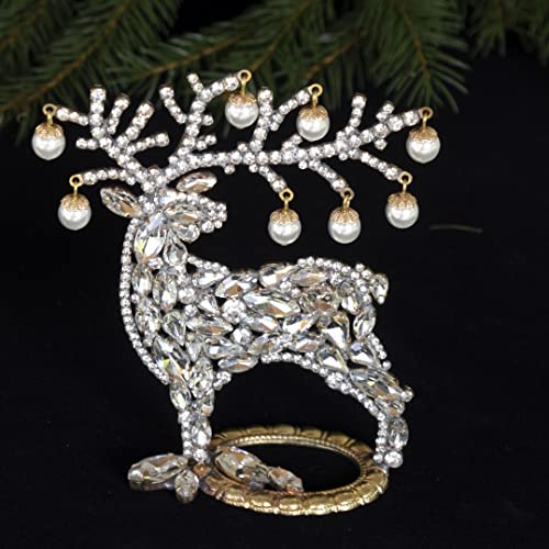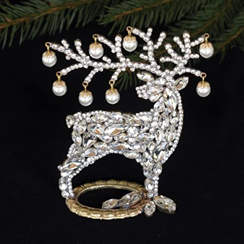 Delicate Christmas Reindeers made with clear coloured rhinestone crystals. Antlers are finished off beautifully with pearl coloured rhinestone crystals. They come in a set of 2. Size: 3,6×4,7×1,4 inch – one reeindeer (9,3x12x4 cm). Unique Christmas Reindeers. Hand made bijoux. Czech rhinestones. Set in non-plated brass. We follow the spectacular craft bijoux history of our region. We use old handmade techniques and use only the finest material and best quality crystal’s. If there is an item that you are interested in but would like some changes made or something unique added, please do not hesitate to contact us. We are able to meet the demanding requirements of designs (figures up 1m high). We are able to guarantee FREE delivery to USA within max. 10 working days via FEDEX. Free worldwide economical transport for the rest of world may take up 2 to 30 days.