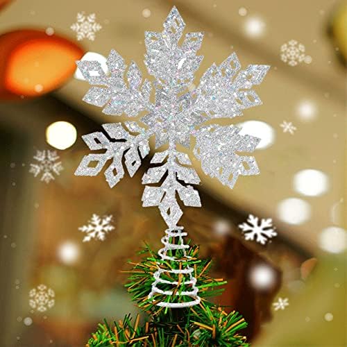 Light up Your Christmas — Epesl silver snow-shaped tree top light with 3D rotating white snowflake LED projector shining high-definition snowflakes lighting creates a dynamic pattern to your Xmas ambience.