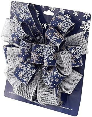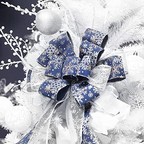 Christmas Tree Topper Bow, 44X12 Inch Artificial Xmas Tree Flower Topper Decor, for Family, Wedding, Birthday Party, Indoor Outdoor Thanksgiving Christmas Decoration – Blue/Sliver/Snowflake.