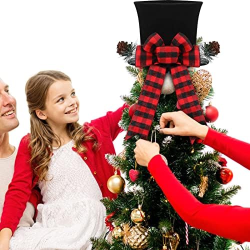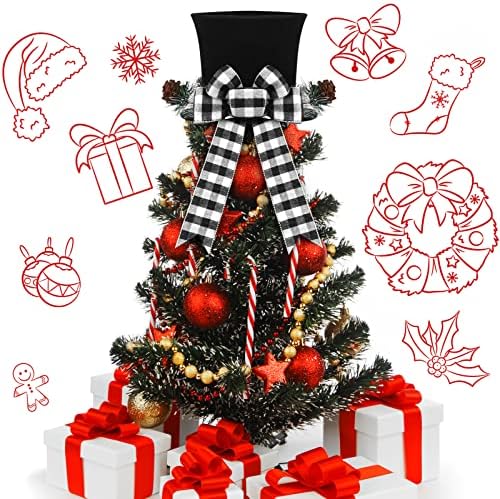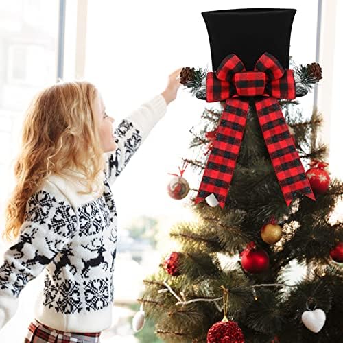 Christmas Tree Toppers 2 Pieces Black White Plaid Christmas Tree Topper Black Red Bow Christmas Tree Topper Black Top Hat Christmas Tree Topper Fabric Hat Tree Toppers Christmas Decorations