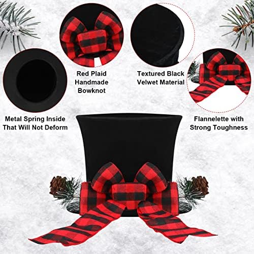 Various styles: you will receive 2 pieces of black top hat tree toppers in different styles that can be decorated with large checked bowknot, very suitable for you to dress up in your Christmas tree, which can catch people’s eyes for the first timeComfortable to touch: these Christmas hat tree