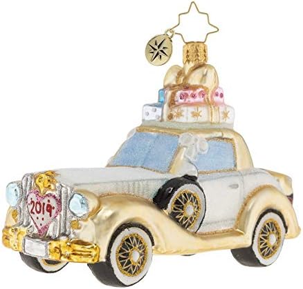 Christopher Radko Hand-Crafted European Glass Christmas Decorative Figural Ornament, Wedding Bliss Chariot