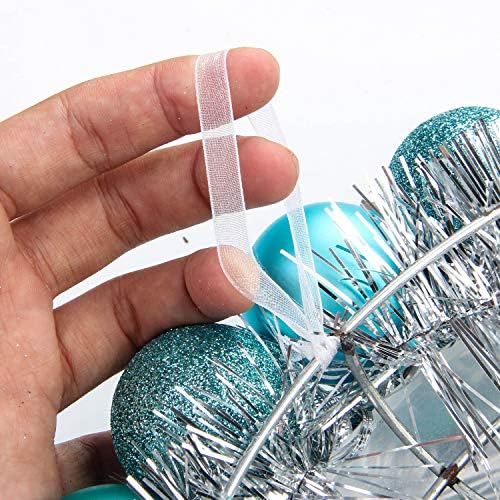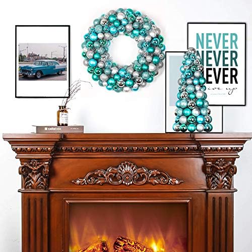 Costyleen 16 Inch Christmas Ball Wreath Home Party Decors Xmas Front Door Decorative Hanging Christmaswreaths Ball Ornaments Peacock Blue Silver