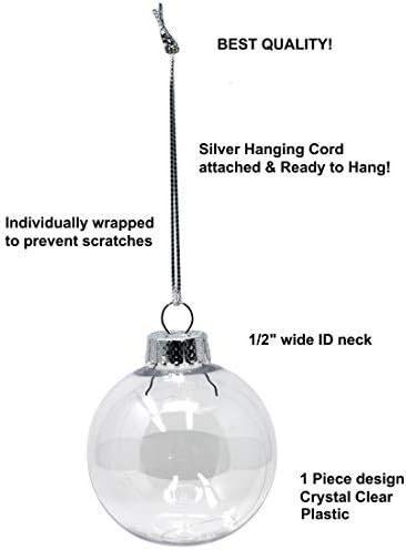 BEST QUALITY – Our Ornaments are crystal clear and sturdy plastic with silver metal hanger caps and will not shatter like glass ornaments.