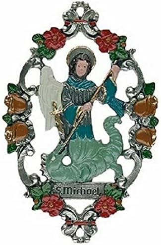 “Decor for Christmas and Not Only” St Michael Archangel Slaying Dragon German Pewter Christmas Ornament Saint St. Michael Ornament Handcrafted in Germany Hand painted on one side of the ornament. Made from high quality pewter Approximately 4.5 inches tall (12 cm)
