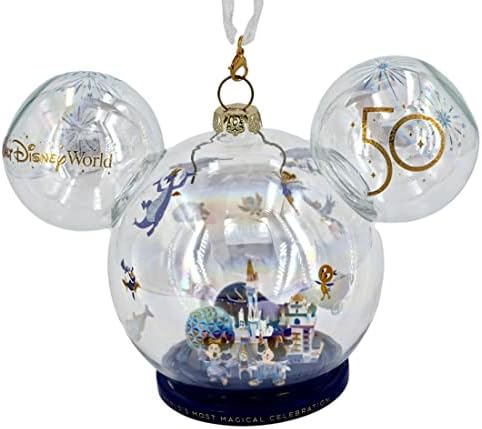 Released September 2021 Created exclusively for Disney Theme Parks and ResortsCreated exclusively for Disney Theme Parks and ResortsMickey head shaped glass Christmas tree ornament ** One ear contains “Walt Disney World” and the other contains “50”Celebrating Walt Disney World’s 50th Anniversary ** Base reads “The world’s most magical celebration”Inside the