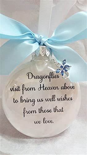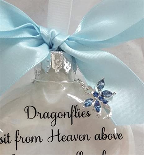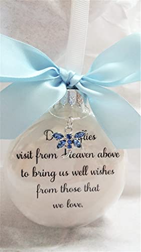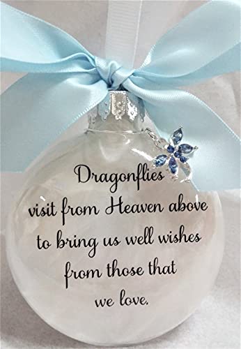 Dragonfly Memorial Christmas Ornament Dragonflies visit from Heaven with Light Blue Crystal Charm