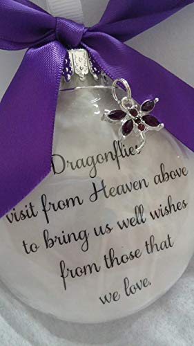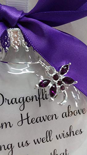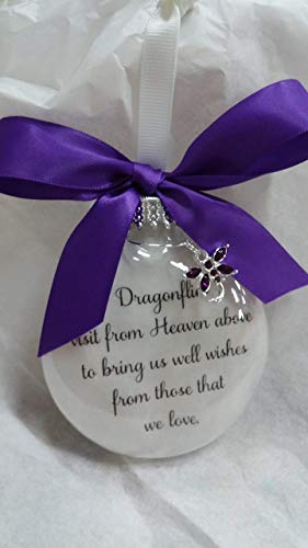 Dragonfly Memorial Christmas Ornament Gift Dragonflies visit from Heaven with Purple Crystal Charm