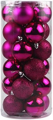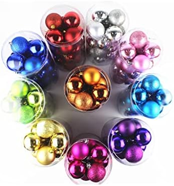 Material: Plasticball size: 6cm/2.36in Package include : 24Pcs Christmas ballBecause of the size measurements are handmade, so there may be 0.1-0.3 cm error.Please understand. Size: about 2.36in(6cm)The Christmas ball ornaments are very light weight and Balls are equipped with Caps, String Hangers,it’s easy to hang on the tree and take