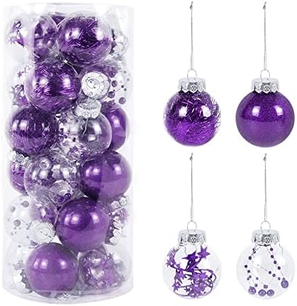 DRGRG 6cm Shatterproof Christmas Tree Balls Plastic Clear Xmas Ball Christmas Tree Ornament for Christmas (Color : Purple)