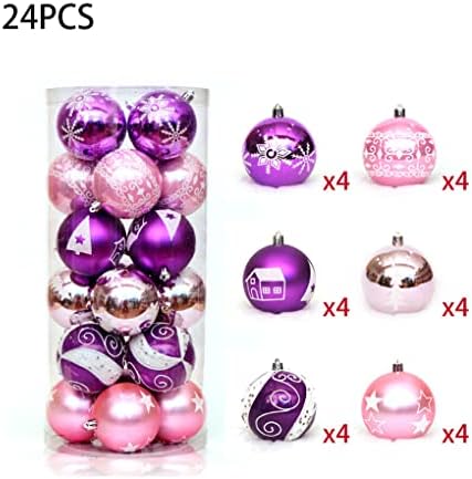 DTOWER Pack of 24 Christmas Balls Festival Holiday Decoration Ornaments Pendant, Pink Purple
