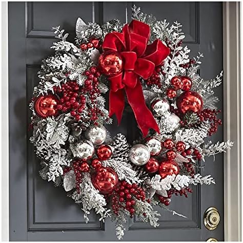 Easy to decorate Chnistmas WreathsDecoration for Front Door, Wall Hanging Christmas Snowball Red Berry Pine Cone Garland Ornament for Xmas Partyindoors and Outdoors Home Decor Holiday decoration