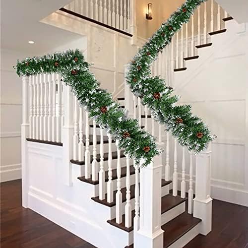 FEANG 9 FT Artificial Green Christmas Garland with Pine Cones and Snowy Pine Christmas Wreath for Xmas Home Party Christmas Decoration (Color : Green)