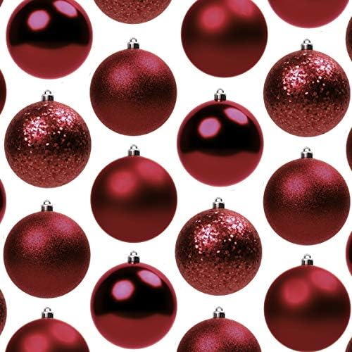 Yule love our ultra-durable shatterproof decorations that will keep your family and pets safe from any Christmas ornament cat-astrophes.Our variety bulk pack contains 4 different finishes for extra festive x-mas fun making them a 2020 must have. These indoor essentials will keep the holiday cheer going strong all season long. Don’t be the spoilsport on your block & make Santa proud when you decorate your house with our brightly colored baubles.Lightweight ornaments won’t bend or break your branches.Don’t weigh down your tree with heavy and expensive crystal ornaments. Our super lightweight adornments are strong enough to last many yuletide seasons, but light enough to keep your tree intact all while looking great!Get in the holiday spirit while bonding with your loved ones!Does your little one have that Christmas twinkle in their eye? Have the best night with your family by getting together to decorate the tree with our ornament and hook kit. It’s a classic religious pastime the whole family can enjoy. Design your Christmas tree the way you and your children want with our cute multipack of round ornaments.Are the caps of the xmas ornaments removable?Yes, they have secure caps that will stay on unless you decide to take them off. Small caps can be easily removed for arts and crafts projects. Fill uncapped ornaments in a large vase or bowl for a big beautiful centerpiece that will add a personalized touch to the room.What’s in the box?You will receive a decorative box set of 96 burgundy 1.6 inch ornaments and hangers in assorted finishes – 24 shiny, 24 matte, 24 glitter and 24 sequin baubles.Lifetime 100% money-back satisfaction guarantee!If you aren’t completely satisfied with your order, simply email us, and we will respond within 24 hours to make it right even on the weekends. We absolutely guarantee your satisfaction or your money back!