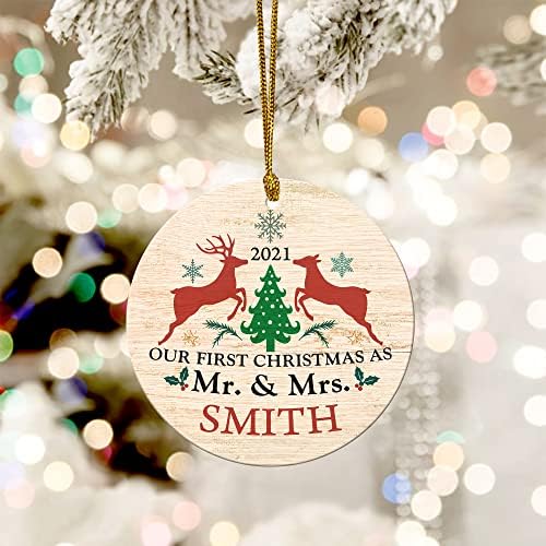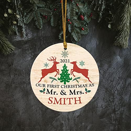 First Christmas Married Ornament 2021, Mr. & Mrs. Reindeer Ornament, Wedding Keepsake Gift, Wedding Ornament Personalized, Xmas DecorationMade of wood with double-sided printing.Easy to hang: comes with ribbon, easy to hang on the Christmas tree or anywhere.Beautiful Christmas Tree Ornaments: Great beautiful design to decorate the Christmas treeMeasures: 3 inchesA