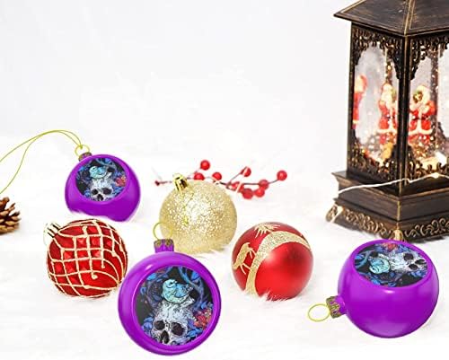 Flowers and Skull Christmas Ball Ornaments Shatterproof Hang Balls 2.4″ Christmas Tree Decorations Holiday Wedding Party Decoration Ball