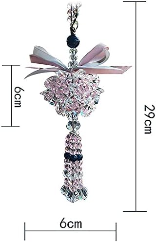 FMOGE Feng Shui Rear View Mirror Charms Crystal Ball Car Pendant Lucky Interiors Ornaments Window Wall Hanging Accessory Decoration Auto Interior -Pink