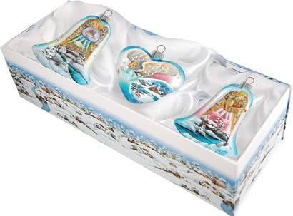 Features. Invite the beauty of the season into your home with G. DeBrekhts Holiday Splendor Collection of Hand-painted glass Christmas ornaments inspired by an old world Russian Fedoskino and Palekh Artistic technique. Decorating your Christmas tree is a special time for families and with G. DeBrekht ornaments you can create your own style and cultivate a gallery of art for all to enjoy. Each ornament is adorned with a detailed miniature Christmas scene accented with a touch of gold or silver finished with a lovely satin ribbon and then placed in a luxurious satin-lined box. In the spirit of giving G.DeBrekht ornaments and dcor also make beautiful Christmas and holiday gifts to share with loved ones. Type – Angel Set of 3. Dimension – 13.5 x 5 x 4 in.