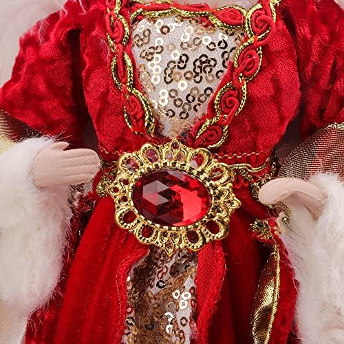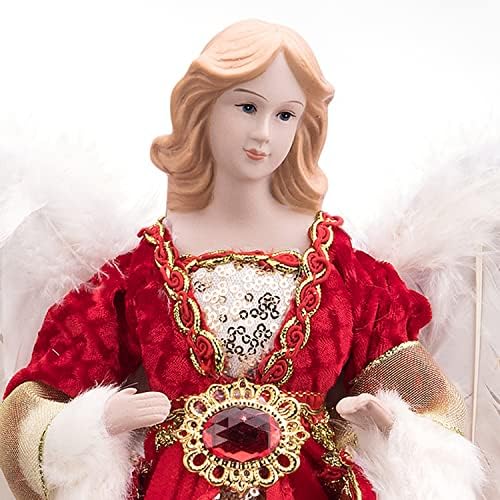 GEDLIRE 16 inch Christmas Angel Tree Topper, Red Gold Angel Treetop with Luxury Feather Wings, Christmas Tree Top Decorations Ornament Flying Angel Fairy Goddess Figurine, Holidays Indoor Home Decor