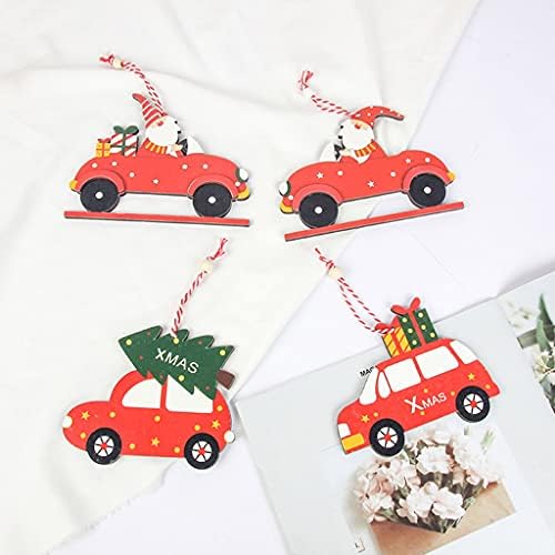 Gloaiidjonh Christmas Ornament Set of 6 Wooden Car Gnome Pendant for Christmas Santa Crafts