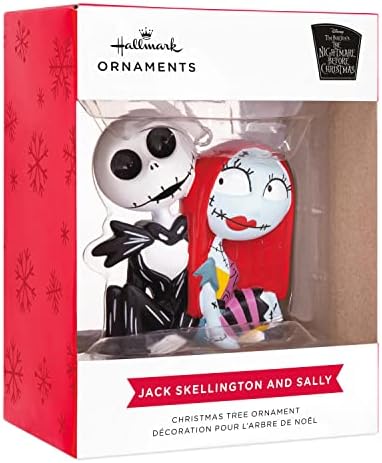 Scare up some holiday fun with this Christmas tree ornament that features Jack Skellington and Sally from “The Nightmare Before Christmas.” The Pumpkin King and his stitched-up sweetheart are sure to bring the spirit of the season to your decorating for years to come. Made of resin, this Hallmark Ornament measures 2.28 x 2.73 x 0.55 inches. The ornament is ready to hang on your Christmas tree with a hanger attachment. Great Christmas gift idea for fans of Tim Burton’s modern holiday classic movie “The Nightmare Before Christmas.” Hallmark Ornaments celebrate characters and personalities from contemporary and classic movies, TV shows, toys, entertainment and sports. Each festive and collectible ornament is perfect for sharing with family and friends. Hallmark has been your family-owned creator of greeting cards, Christmas tree ornaments, gifts, gift wrap and more for over 100 years. We take deep pride in helping individuals connect in just the right way.