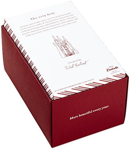 Give every holiday season a fairy-tale beginning when you hang this stunning Christmas tree ornament of the castle where Cinderella and Prince Charming spend their happily ever after. Sparkling gemstones adorn the heavy, die-cast metal castle decoration, making it a perfect keepsake for remembering a special family vacation or simply reminiscing about the beloved Disney movie, “Cinderella.” Designed by Robert Hurlburt, this die-cast metal Christmas tree ornament features gemstones accents. Pre-packaged in a box for easy gift giving, preservation and storage. Dated 2018 in copyright. With unparalleled artistry and exceptional detail, each festive and collectible Keepsake Ornament is made for years of celebrations. From preserving precious memories to commemorating special milestones and interests, there’s a Hallmark ornament for everyone on your gift list. Hallmark has been your family-owned creator of greeting cards, gifts, gift wrap, ornaments and more for over 100 years. We take deep pride in helping individuals connect in just the right way. Metal Christmas tree ornament is lead-free and measures 3.08″ W x 5.82″ H x 2.94″ D.