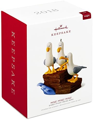 Fans of “Finding Nemo” will love getting their hands on this Christmas tree ornament that features the famous seagulls and plays an audio clip of their signature “Mine! Mine! Mine!” phrase from the movie. Battery-operated sound feature includes two replaceable LR44 batteries. Magic Sound Christmas tree ornament. Press the button on the ornament to hear memorable moments from the film. Battery operated. Two (2) LR44 batteries included. Artist crafted by Nina Aube, this Christmas tree ornament comes pre-packaged in a box for easy gift giving, preservation and storage. Dated 2018 in copyright. With unparalleled artistry and exceptional detail, each festive and collectible Keepsake Ornament is made for years of celebrations. From preserving precious memories to commemorating special milestones and interests, there’s a Hallmark ornament for everyone on your gift list. Hallmark has been your family-owned creator of greeting cards, gifts, gift wrap, ornaments and more for over 100 years. We take deep pride in helping individuals connect in just the right way. Plastic Christmas tree ornament is lead-free and measures 3.12″ W x 3.12″ H x 2.28″ D.