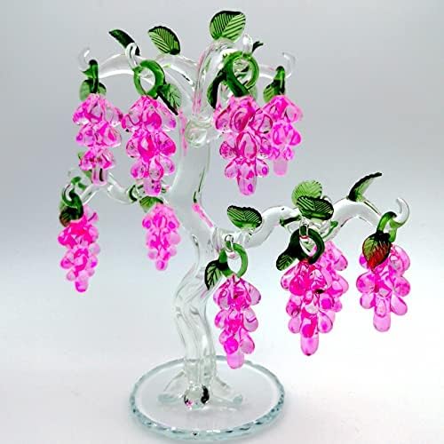 HUANSUN Crystal Glass Grape Tree Ornament Home Decoration Housewarming Gifts Money Tree Figurine Crafts,Pink,18 Hangs
